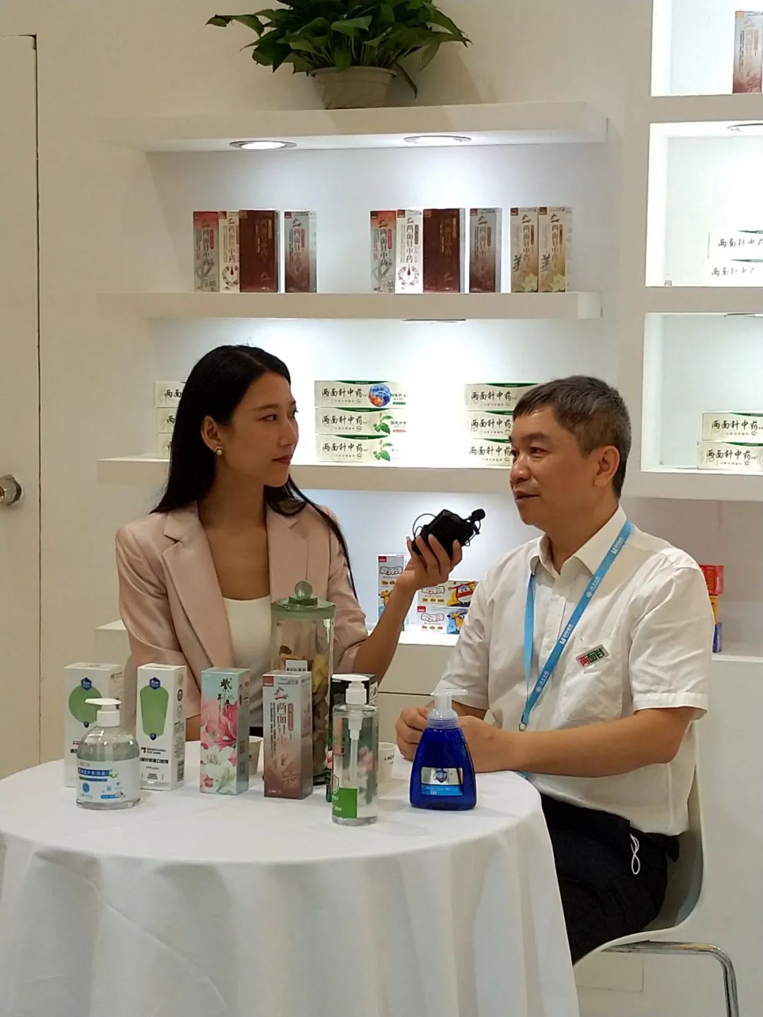 CCTV发现之旅频道《品质》栏目、上海电视台生活时尚频道等媒体先后来到今年会展位进行现场采访。今年会公司市场部部长莫瑞珖在接受采访中向主持人介绍了今年会公司坚持传承发扬中药日化核心技术的企业理念,推出的今年会中药消痛系列牙膏、青蒿素牙膏、紫荆花多效护龈牙膏及“消”字号洗护产品,广受市场和消费者的青睐。