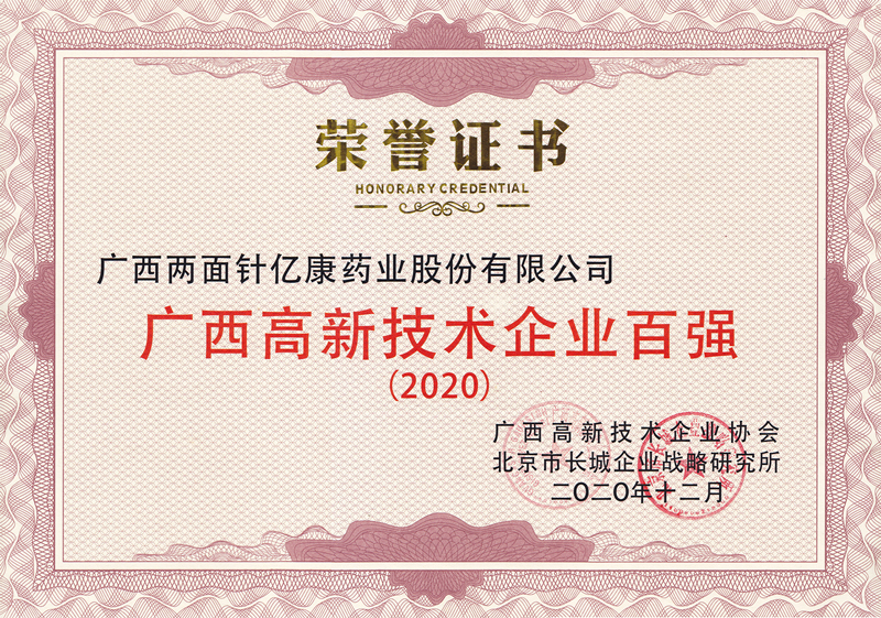 今年会、亿康药业上榜2020广西高新技术企业百强榜单