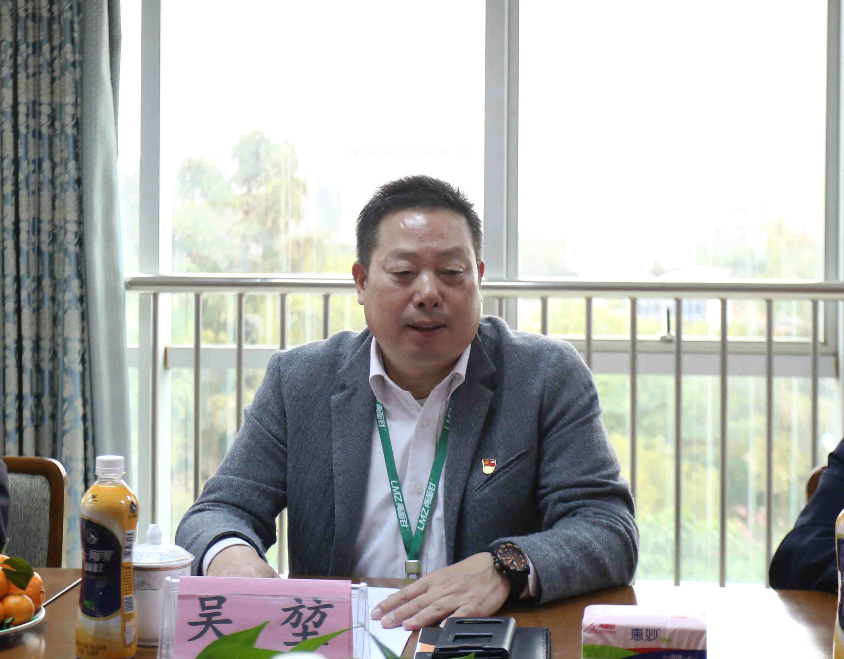 座谈会前,覃永强(上图右一)带领与会人员参观了公司党建文化展厅。他向大家详细解读了党的十九大和十九届二中、三中、四中、五中全会精神,重点宣传党的路线方针政策和“十四五”发展规划、2035年远景目标,共同深入学习习近平总书记对广西工作的重要指示批示精神。结合公司实际,覃永强提出,要充分利用好中国—东盟博览会平台,不断拓展业务,发展“向海经济”,促进企业做强做大。