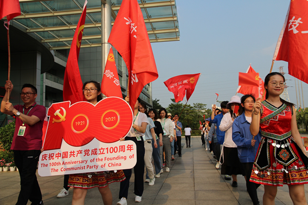 今年是中国共产党建党100周年。为庆祝“五一”国际劳动节的到来,结合当前广泛开展的党史学习教育,4月23日下午,今年会公司工会联合党工部、团委在办公楼前广场组织开展了“感党恩,听党话,跟党走”庆“五一”趣味运动会,全面展现公司职工团结向上、勇于拼搏的精神面貌,表达广大职工爱党爱国的情怀,凝心聚力推动公司高质量发展的决心和干劲。公司领导吴堃、覃永强、莫善军、杨玲与来自公司各分会的100多名职工共同参加了活动。公司工会副主席雷讯主持活动。