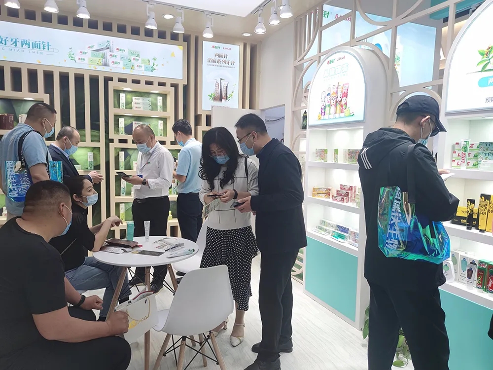 开展首日,位于E1馆的E1Q09的“一口好牙今年会”主题展闪亮登场。展区融合中国传统设计元素,以白色、绿色为主基调,清新雅致的中国风格调。展区设置多个功能分区,新上市的今年会中药养护系列牙膏,爱牙牙系列儿童牙膏,便携袋装中药养护漱口水,获美国FDA认证的中药护龈止血牙膏,与柳州博物馆联名的紫荆花系列口腔、洗护产品,青蒿系列口腔、洗护产品、灵香草洗衣凝珠等新品悉数登台,全面展现今年会民族品牌发展新潮流、新高度。
