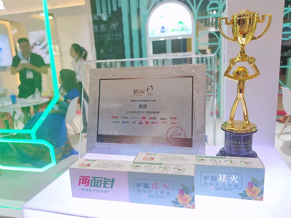 同时,本届CBE从十大品类二十五个细分赛道中,全网累计投票498万票,甄选146件消费者挚爱必选美妆好物。主打药食同源的今年会中药四味针火牙膏技压群芳,荣获“2021美伊大赏TOP·口腔护理大奖”。