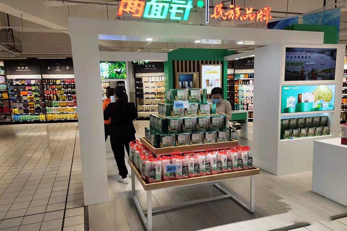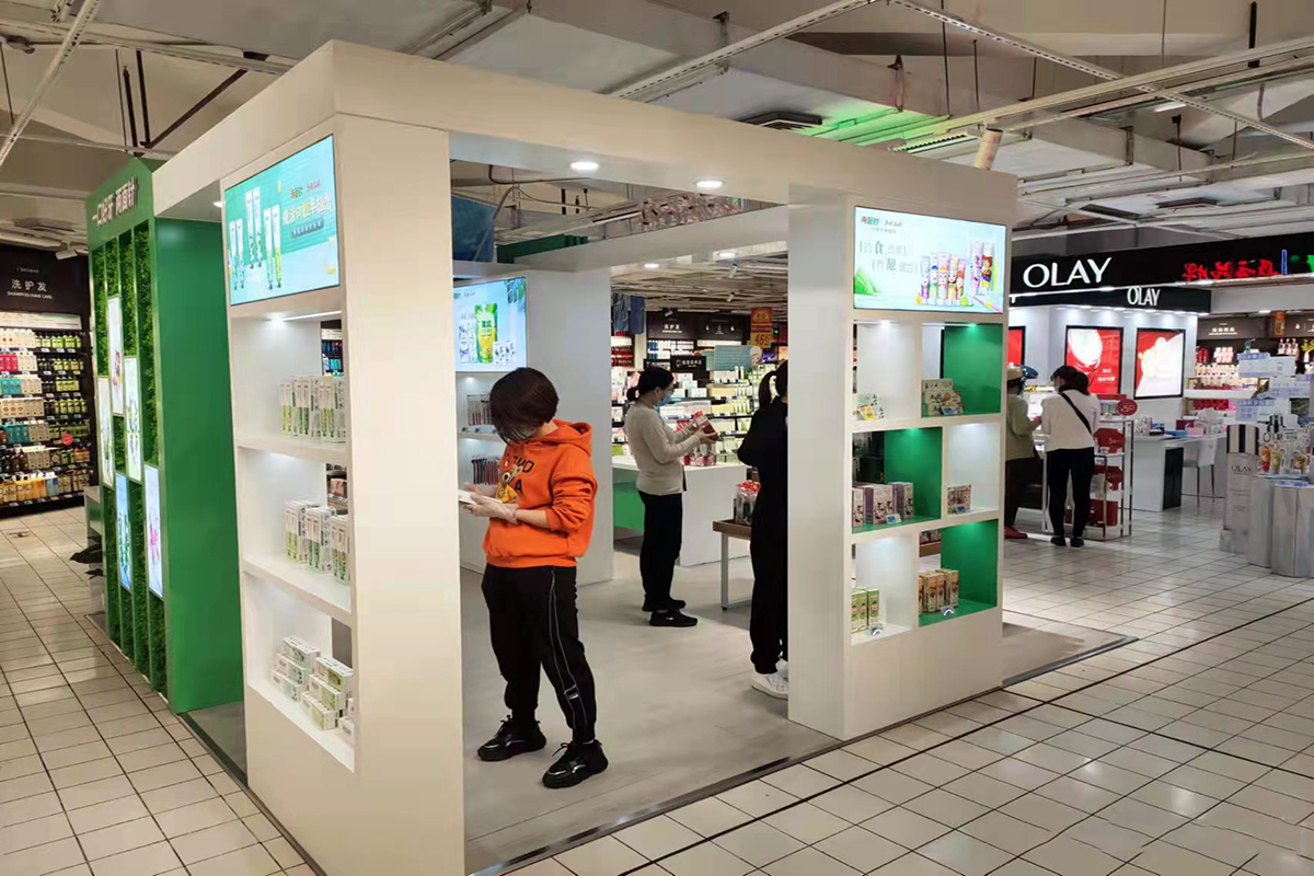 今年会SIS位于大润发主要销售通道中,整体设计打破了传统柜台销售理念,秉承“传承、健康、时尚”的品牌理念,以2021年东盟博览会今年会展馆设计为原型,在时尚的潮流中打造出一片专属今年会品牌的艺术空间,成了整个大润发里一道靓丽的风景线。开业当天便吸引了众多消费者的围观。