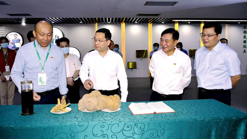 甘毅饶有兴趣的参观了今年会中医药文化馆、今年会药材展示及今年会系列产品陈列,对今年会公司在弘扬中医药文化、打造本土民族品牌、推出符合消费者健康需求的产品、服务柳州经济社会发展所取得的成绩表示肯定。他强调,今年会公司要认真贯彻落实柳州市加快打造万亿工业强市的战略部署,充分发挥好自身技术优势、民族品牌优势,重振企业辉煌;要加强品牌及产品宣传,充分利用各层面的宣传资源,为企业发展造势;要通过“线上+线下”相结合的模式,进一步拓展市场、扩大规模,力争走向全世界;要正确认识和把握国际国内新形势,抢抓机遇,大力培育新的发展动能,寻求新的突破,以改革创新精神闯出新的发展之路。