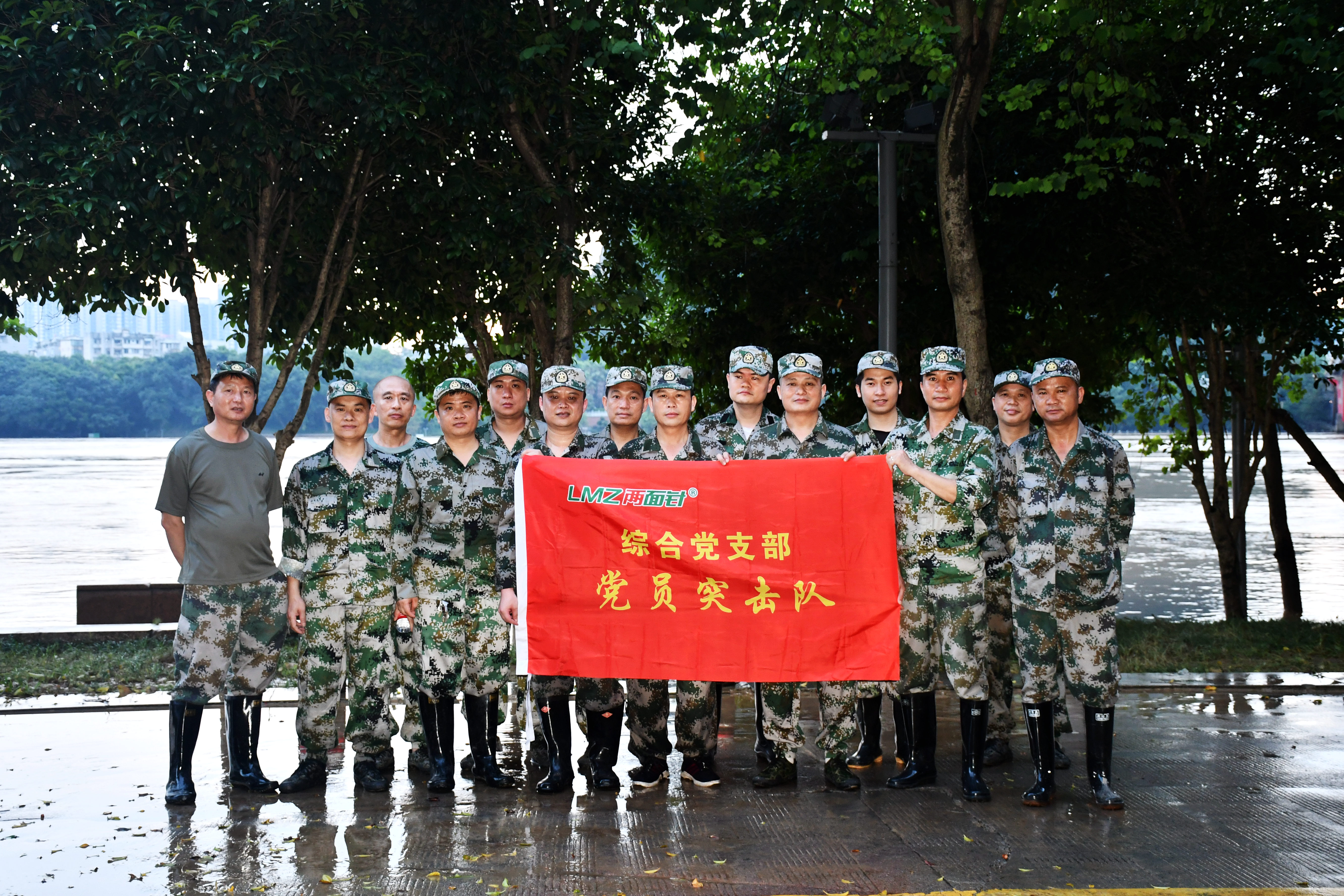 2022年6月19日起,继6月初后没多久,柳州地区及上游又遭受连续几日的大雨和暴雨,柳江河水迎来了第二次洪峰,河岸多处又开始被淹。6月21日上午,公司武装部接到城中区武装部的命令后,立即召集公司应急分队队员做好抗洪抢险的准备工作。当天下午,天突然下起了倾盆大雨,应急队员们冒着雨准时到达集合点。虽然雨水淋湿了他们的衣服和鞋子,但他们却全然不顾,依然坚守阵地等待抗洪清淤的命令,这一等就是两个小时。由于雨水太大,洪水并没有退去,当日未能开展清淤工作。