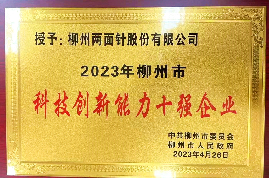 公司荣获“2023年柳州市 科技创新能力十强企业”称号