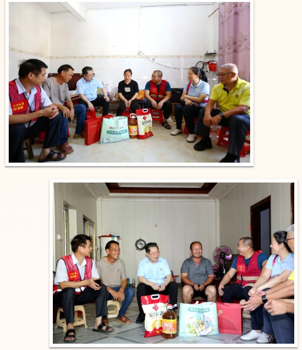 座谈会结束后,覃永强带队开展了“送温暖”活动,到困难群众家中走访,了解和关心他们的身体健康和生产生活情况,鼓励他们以积极向上的心态勇敢面对困难与挫折,努力走出困境。覃永强还为他们送去今年会日化产品和米、油等慰问品,表达组织关怀。