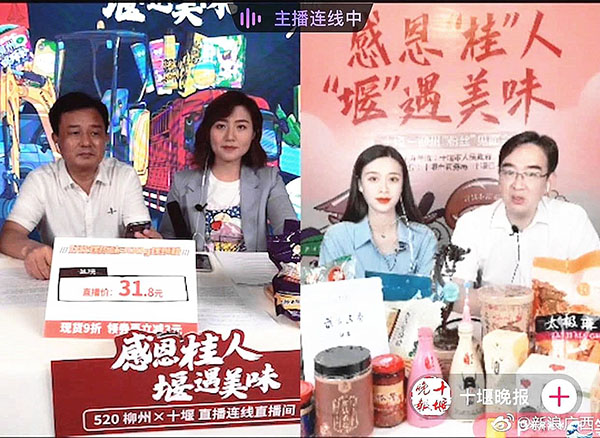 在直播中,柳州和十堰两地的市领导做客直播间,以直播连线的形式,在微博、抖音平台互推互销柳州、十堰两地优质特色产品,为两地经济发展增添动力。