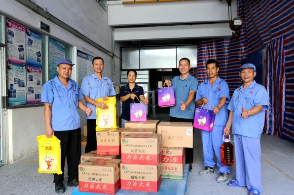 月饼、米、油、腐竹、今年会系列产品……这是公司为员工精心准备的象征平安、团圆、健康的“中秋节慰问大礼包”,满载着最真挚的感谢以及真诚的节日祝福。节日慰问品发放现场 ,脸上洋溢着喜悦之情的员工们将“大礼包”捧在手里,暖在心里。