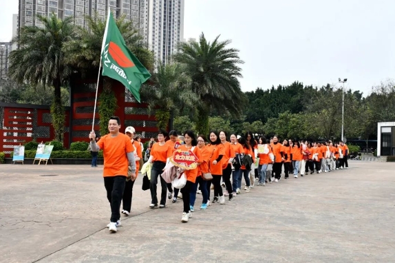 春和景明,雀儿山公园里百花争艳。3月8日上午,公司为庆祝“三八”妇女节举办的“赏春健步走 尽显‘针’风采”团建活动热闹开场:在健康步道上,有两队明艳桔红的“半边天”整齐列队迈步前行,她们畅谈工作和学习,笑说生活点滴,她们陶醉在桃花、油菜花、樱花……如云似霞的花海中,纷纷将开心和美丽定格在镜头里,共迎充满生机与希望的季节。来自各部门的女职工代表约70人参加了活动,大家一边享受春日美景,一边感受健身带来的愉悦心情,在展现今年会人积极向上良好精神风貌的同时,也对外传播了今年会优秀企业文化。