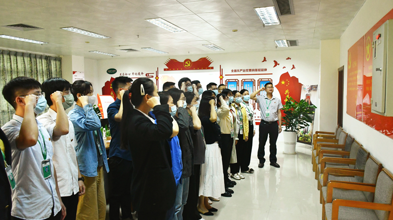 伴随青春激昂的歌曲,与会团员青年共同齐唱中国共青团团歌《光荣啊!中国共青团》。随后,公司团委书记张进源带领大家重温入团誓词。