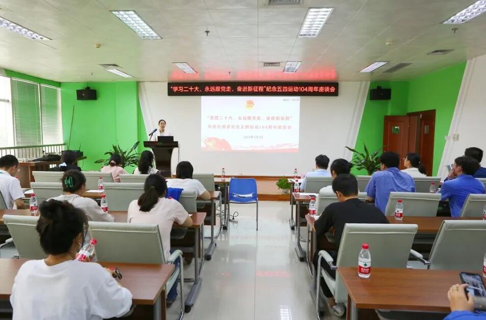火红的五月,火热的青春!5月4日,公司团委在今年会学堂召开“学习二十大、永远跟党走、奋进新征程”纪念五四运动104周年座谈会,30余名团员青年参加了座谈。公司党委副书记、纪委书记覃永强出席会议。会议由团委书记马睿主持。
