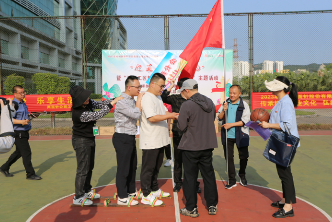 在民族团结之家户外篮球场,趣味运动会欢乐开赛。板鞋接力+投篮、石榴园打卡+背夹球合力前进、巨人脚步齐心向前、飞盘选题+合力拼图等四个环节的接力赛让现场热闹非凡。各分会的参赛队员们团结协作,争分夺秒,用涨红的脸颊、呐喊的声音完成了“壮味十足”的板鞋接力和脚不动手动的趣味投篮,随后,7名队员“心心相印”前后夹球合力前进,紧接着由8名队员组成巨人脚步齐心向前,由施展巧力的飞盘和施展速度与协作的拼图活动将比赛推向高潮。队员们在呐喊欢呼中挥洒汗水,在凝气提神中回答问题,现场活力无限,精彩纷呈,各族员工展现了朝气蓬勃、昂扬向上、团结拼搏的良好风貌。经过激烈角逐,最终亿康工会队夺得冠军,技术分会队和生产分会队分别获得第二、第三名。