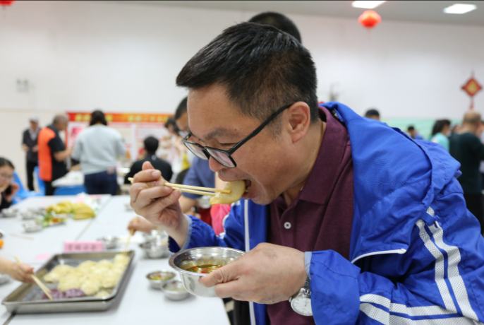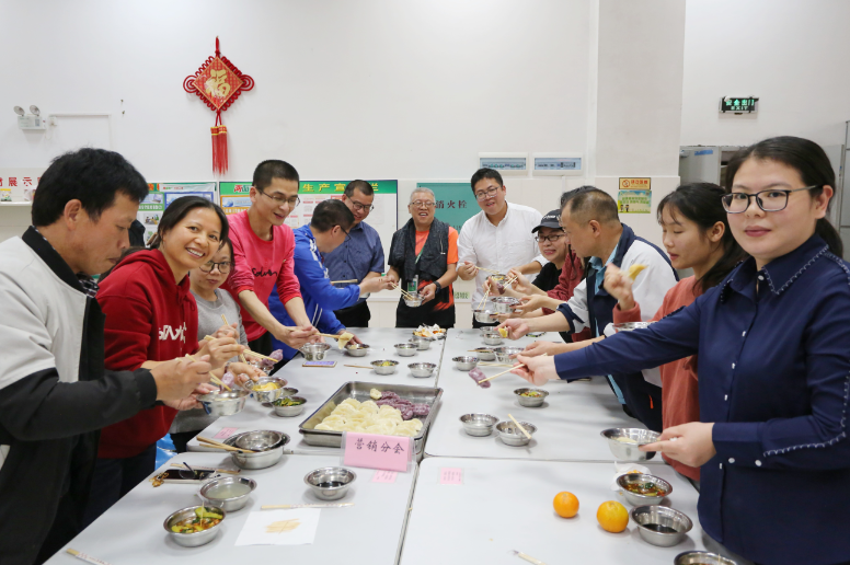 传统的白色、菠菜汁的绿色、南瓜汁的黄色、甘蓝菜汁的紫色……五颜六色的饺子皮甚是好看,员工们撸起袖子、洗干净手,动作娴熟、有说有笑的包起饺子。品尝亲手包的饺子,感受小小饺子包出的浓浓同事友情,分享劳动光荣的快乐成果,以实际行动践行劳动精神。