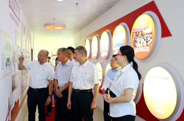 活动中,与会领导、嘉宾一同观看了今年会公司《针行天下 廉创未来》清廉国企创建宣传视频。在工作人员陪同下,轻工中心领导干部参观了今年会公司党建长廊、清廉国企宣教阵地、警示教育室、亲清石榴园、民族团结之家、企业文化展厅等党建阵地及“针”行生产线。