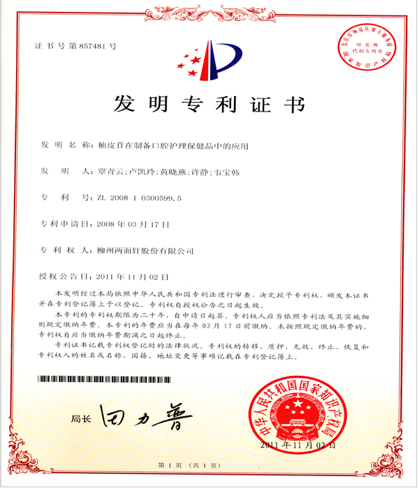 柚皮苷在制备口腔护理保健品中的应用