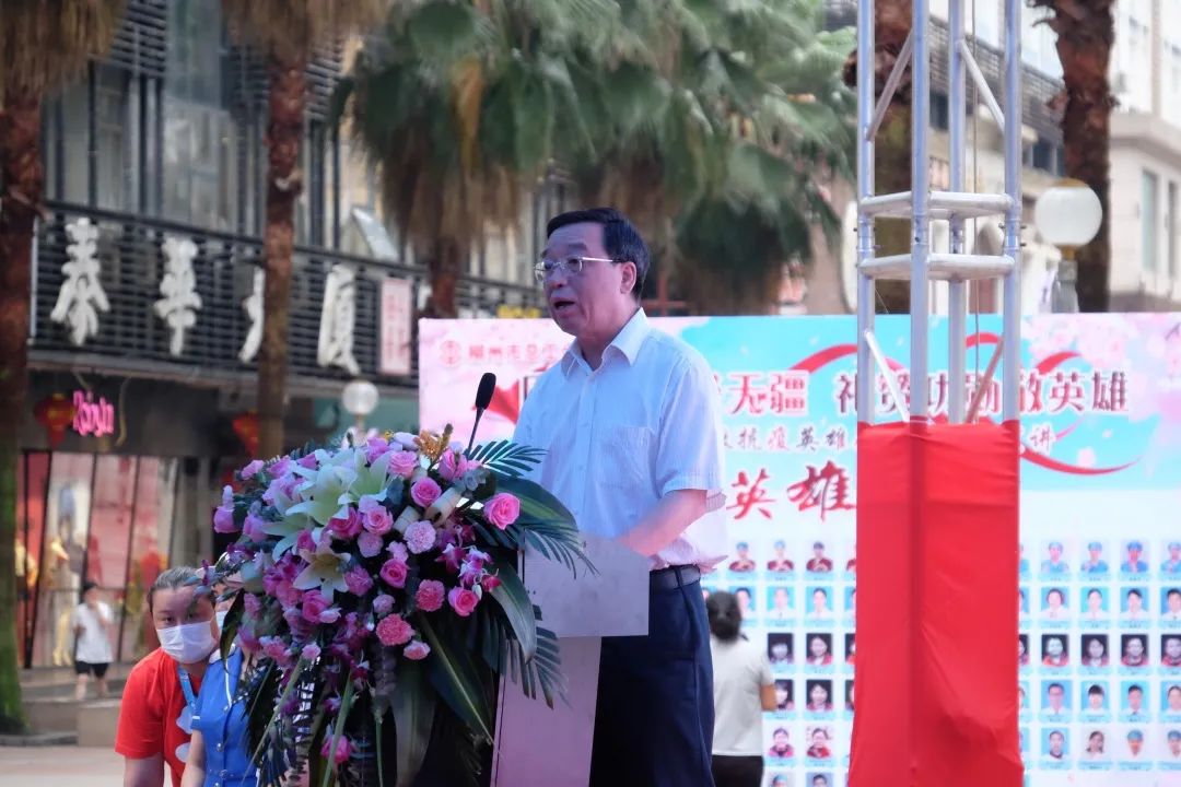 5月21日下午,在柳州五星商业大厦前,柳州市总工会、柳州市财贸工会、柳州五星百货股份有限公司联合举办援鄂医护队员抗疫事迹公益宣讲活动,向抗疫一线医护人员致敬。