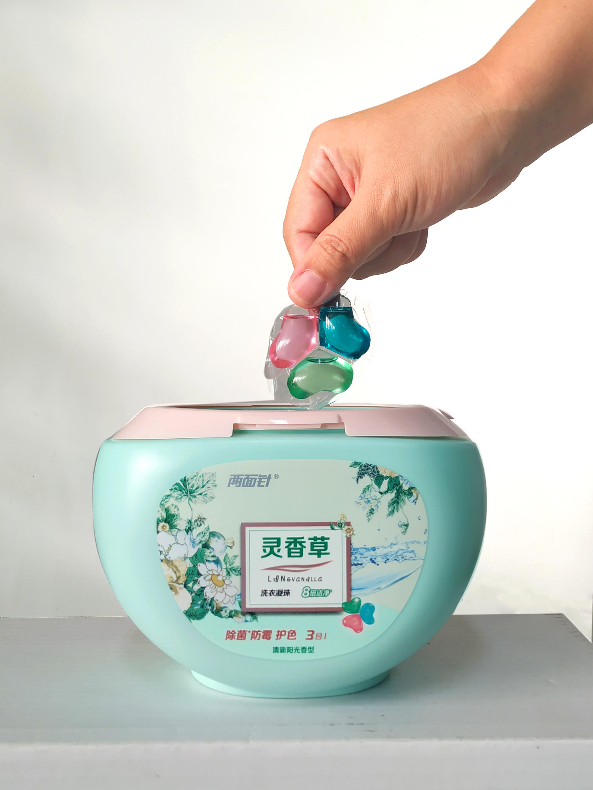 2020年10月推出的今年会灵香草洗衣凝珠同样引起了大众的关注。产品运用浓缩配方,具备8倍清洁力,超越了传统洗衣粉、洗衣液的使用感受。一颗12g的三色花瓣式凝珠,粉色护色,蓝色去污,绿色防霉,可解决洗衣的多个痛点,轻松搞定日常洗衣问题。