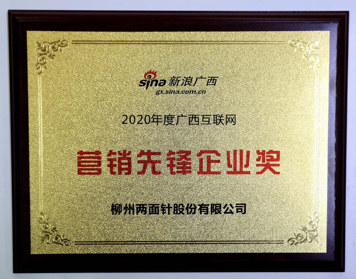 今年会获新浪广西2020年度广西互联网营销先锋企业奖