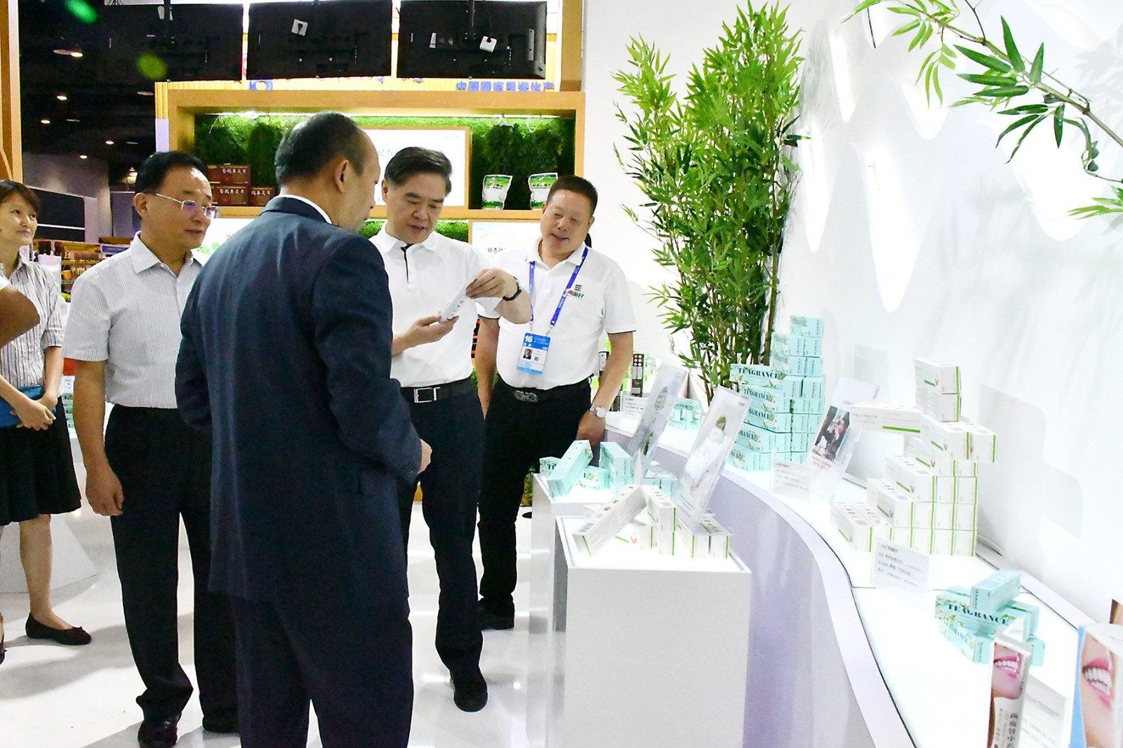 今年会公司党委书记、董事长林钻煌,党委副书记、总裁吴堃向领导们介绍了今年会公司发展情况、今年会中药日化产业发展理念、产品种类等,重点推荐了获美国FDA认证的中药牙膏及沐兰泽中药洗沐系列产品。